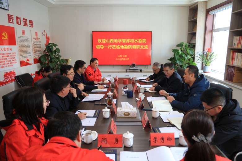 2月22日上午,山西地学智库秘书处秘书长李保福,水勘院有限公司党委书记、董事长曹拥军,党委副书记、副董事长、总经理郭勇洪一行到地勘院有限公司调研交流地热资源开发利用工作,与地勘院有限公司有关人员进行座谈。地勘院有限公司党委书记、董事长赵政主持座谈会。