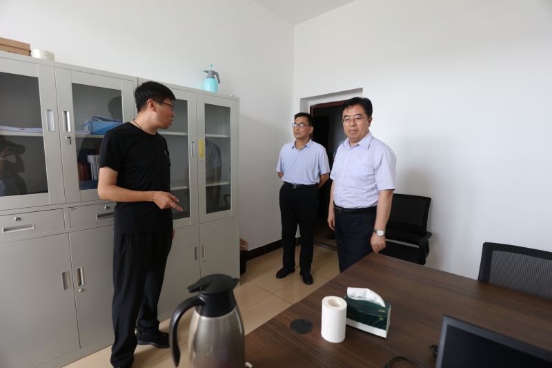 赵政一行查看了办公室、会议室、食堂等办公场所,听取了项目部负责人关于设计孔位、施工单位及施工设备、现场踏勘等情况汇报,详细了解了项目进度、人员配置、工作分工、存在的困难及问题等。与会人员就孔位确定、职责划分、项目推进等方面进行了交流讨论,并提出了意见建议。
