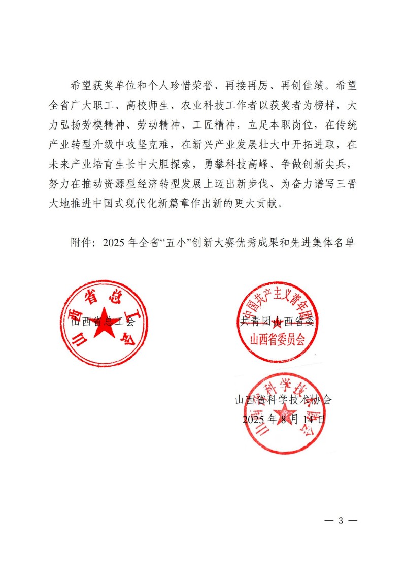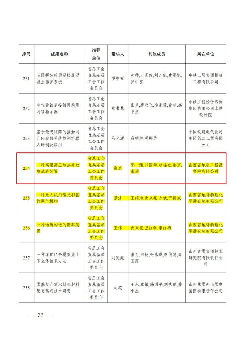 近日,山西省总工会公布了2025年全省“五小”创新大赛优秀成果和先进集体名单。开云(中国)Kaiyun·官方网站自主研发的发明专利“一种高温高压地热井放喷实验装置”,荣获创新大赛二等奖。