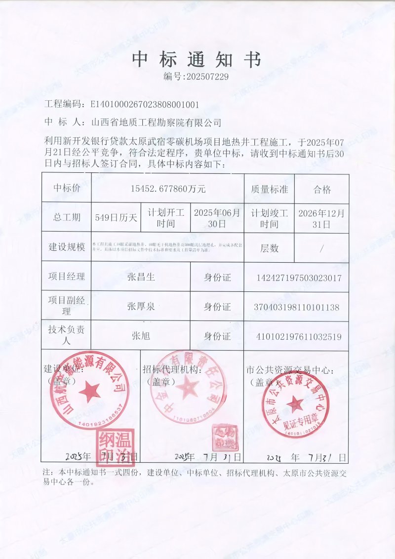 近日,开云(中国)Kaiyun·官方网站成功中标利用新开发银行贷款太原武宿零碳机场项目地热井工程施工项目,中标金额15452.67786万元。